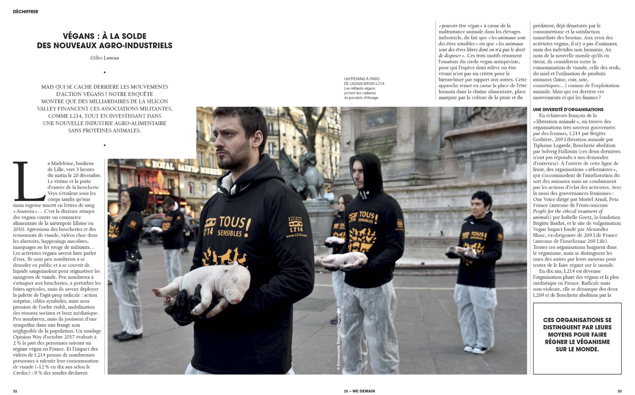 Quand je donnais des cours de nutrition, je les appelais "audit nutritionnel", car le premier pas était de tout bien mettre à plat de l'histoire de la personne -premier pas pour bien comprendre le présent. Sylvain vient de réaliser un superbe audit du champ "animaliste" même sans le citer. Je rebondis sur le sujet, en me basant sur une photo illustrant un article de Gilles Luneau dans wedemain : on voit des garçonnets (pardon j'arrive pas à voir en eux des adultes) offrir en sacrifice des porcelets lors d'une manif' l214 ou assimilé.