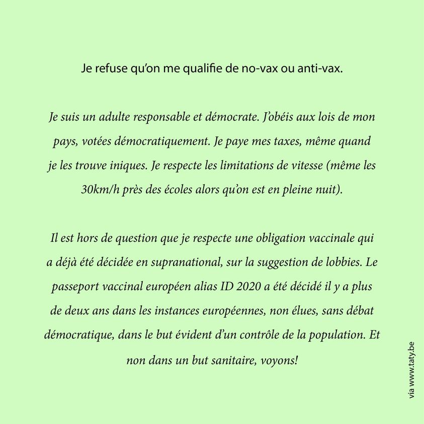 Dans cette optique, on comprend mieux les mesures apparemment arbitraires et qui semblent incohérentes : le port du masque partout, les déclarations sur le net dès qu’on entre en Belgique… ne sont que des façons de commencer à cuire la grenouille petit à petit.