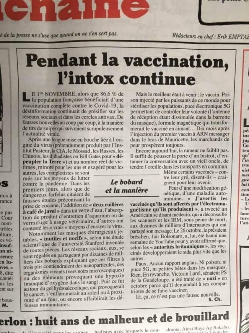 Le titre est hilarant, l'auteur devait savoir que les vaccins fabriqués à la va-vite sur un coin d'ordinateur, quasi pas testés, étaient parfois des poisons pour les injectés. L'intoxication continue, en effet.