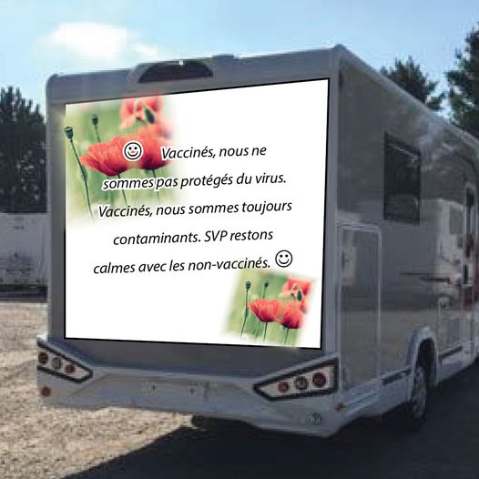 C'est épuisant de faire face à tant de crédulité, si péremptoire en plus. Une fois pour toutes, il faut tuer la rumeur dans l'oeuf. Je vois peu de monde mais je roule. J'afficherai un panneau géant (sur mon camping car géant): "Vaccinés, nous ne sommes pas protégé du virus. Vaccinés, nous sommes toujours contaminants. SVP restons calmes avec les non-vaccinés."
