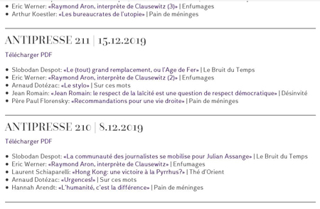 Parlant d’Antipresse, un petit mot commercial (sans commission de leur part!): imaginez que pour les 50€ que j’ai investis pour mon abonnement d’un an, j’ai accès à toutes leurs archives; tous leurs billets si fins, si documentés, si affûtés dans leur analyse!