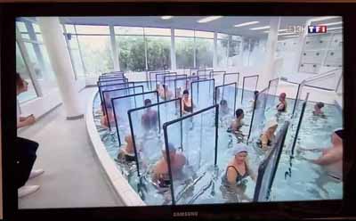 Faire de l'exercice dans des piscines derrière des barrières en plastique