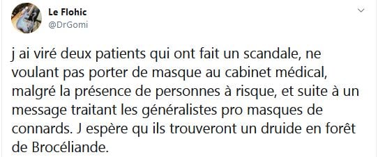 Extase mystique du moment, illogique et irrationnel, on n’est pas sortis de l’auberge. Je relaye ici le touitte d’un médecin qui oublie la réflexion, le respect de chacun, l’étude factuelle des raisons d’agir et qui envoie ses clients chez des druides. Mais c’est toi le druide, mon chéri! On est dans le degré zéro de la démarche scientifique ici.