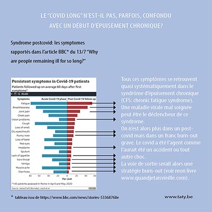 On n’est alors plus dans un post-covid mais dans un franc burn-out grave. Le covid a été l’agent comme l’aurait été un accident ou tout autre choc.