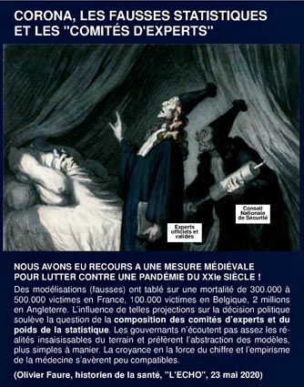 Les chiffres faussés: voir aussi dès mi avril quelques analyses par des pointures, comme l’institut Koch en Allemagne (https://taty.be/articles/CVD_ministereverite200625.html#FM) ou le prof. Jay Bhattacharya (https://taty.be/articles/CVD_contrevoix200714.html#JB). Plus récemment: les maisons de retraite américaines dont on dénombre 8 morts par lit, quelle partouze!