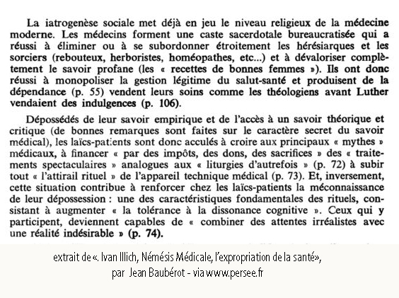 En images, des extrait de la recension du livre "Némésis Médicale, l’expropriation de la santé", par Jean Baubérot .