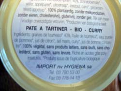 Autre test en vue. Un curryburger frais de chez le fabricant Abinda contient « Tofu, millet, oignon, flocons d'avoine, farine de froment, curry 0.015%, bouillon végétal, sel marin, huile de tournesol et sésame ». J'adapterai sans l'huile de tournesol, puisqu'il est absurde de cuire des huiles sources de si précieux acides gras. Je remplacerai le tofu par des pois chiches ou lentilles moulinés, et je substituerai une autre farine à la farine de froment, dont la fonction « glu » n'est pas essentielle ici. Leur bouillon végétal contenant probablement de la levure, je choisirai la version sans levure ou, mieux encore, j'utiliserai mon bouillon de poule maison, parfait équilibrant protéique ici. La plupart de mes amis végé acceptent au moins le bouillon, alors qu'ils refusent presque toutes les autres sources animales.