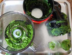 Je n'aime pas la sensation fibreuse du vert de poireau dans les potages, j'ai pris l'habitude d'en presser le jus pour le rajouter deux minutes avant la fin de la cuisson. Cru : imbuvable ; trop cuit : j'y perd une partie de ma précieuse vitamine K. J'utilise aussi le Max pour extraire le jus des cosses de petits pois, cosses que l'on jette normalement. J'en fais une crème de pois divine. Etc etc... avec tout ce qui est trop fibreux et qu'on jette d'habitude.