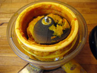 Les potimarons supportent le mixeur, les pommes de terre pas du tout. Notre solution: nous écrasons chacun dans l'assiette, sauf le grand gamin qui préfère la texture "mousseline". Quand les patates sont cuites, il les passe pour lui dans le Jazz Max cône broyeur. Nous avon spris l'habitude (enfin, le Jules pressé que je suis a donné l'habitude) de chacun préparer notre purée dans l'assiette: pour l'un du beurre, pour l'autre de la crème ou de l'huile d'olive, plus ou moins de sel, de poivre, etc.