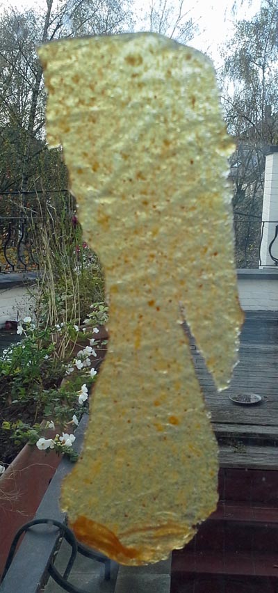 Cet essai est en lien avec mes recherches sur les dentelles végétales (lien hélas mort pour mon ancien blog de fabrication de papier) mais je ne l'ai pas utilisé pour l'expo finalement (on a tout mangé!).