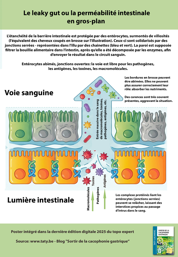 en gros-plan imagé - poster1.12.25 Nouveau poster, qui sera inclus dans la prochaine édition digitale du topo expert. Poster nr 12, doublon de mes premières infographies sur le sujet du "leaky gut".