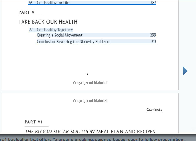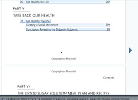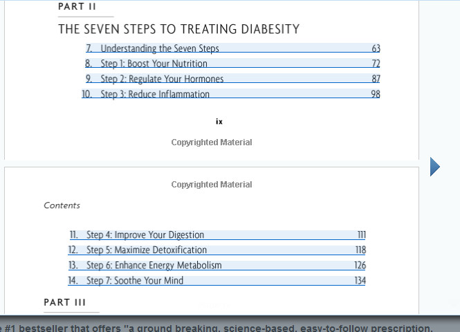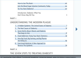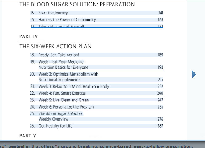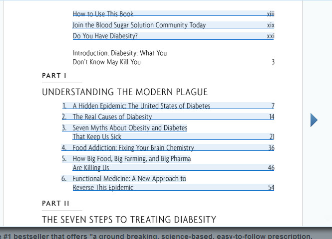 Hyman expose les raisons de l'épidémie de diabésité actuelle, propose 7 étapes pour s'en sortir, qui ne se réduisent bien évidemment pas à "réduire les sucres". Il détaille un plan d'action en 6 semaines pour les mangeurs, ainsi que (à l'intention des coachs, dirais-je) quantité de petits quizz-tests pour évaluer les faiblesses. C'est un condensé de motivation, d'arguments scientifiques, d'observations de terrain, d'historiettes de vie à l'américaine, qui balaye des sujets aussi variés que les désordres hormonaux, la boue toxique dans la quelle nous vivons, les pressions environnementales et le simple excès de sucre. On y découvrira aussi pourquoi tout plan de survie doit inclure les intolérances alimentaires. Une mine d'or pour un auditeur!