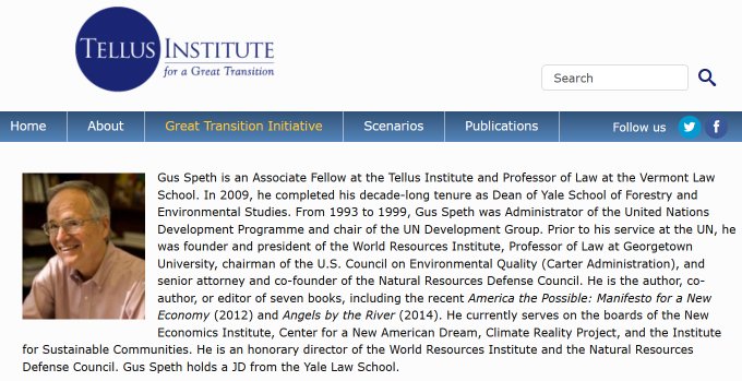 Le président fondateur de Tellus était également en charge du centre américain de SEI. L'un des associés de Tellus (Speth👇) a fondé le World Resources Institute = aujourd'hui l'un des plus proches alliés de #EAT & dominé par les élites de Davos (voir le fil précédent).