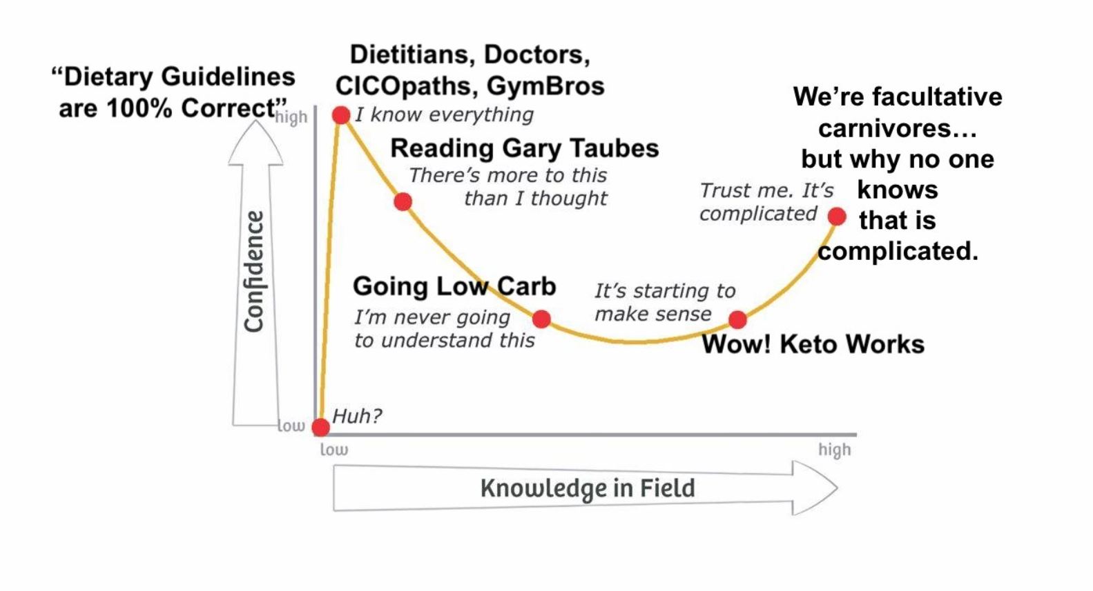31.3 Amusante illustration par un anglophone qui a détourné l'original du dr Fettke que j'avais déjà relayé: l'effet Dunning-Kruger en une courbe simple.