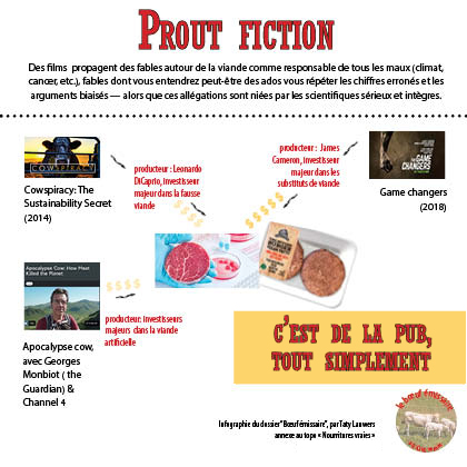 La deuxième étant que le contenu de ces films repose sur des allégations fictives, niées par les scientifiques sérieux et intègres. Ces films sont, tout simplement, de la pub déguisée pour la viande de labo ou les faux-burgers.