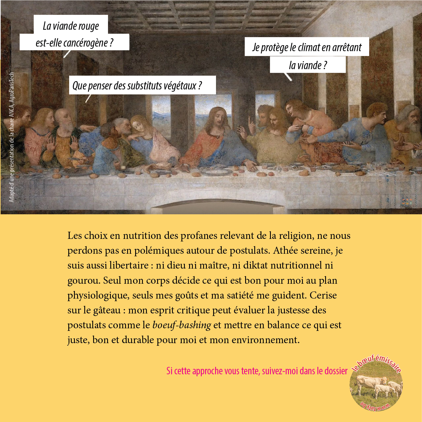 Les choix en nutrition des profanes relevant de la religion plus que de la science, ne nous perdons pas en polémiques autour de postulats. Si l'on ne comprend pas cela, on ne pige rien au dossier #boeufemissaire. Athée sereine, je suis aussi libertaire : ni dieu ni maître, ni diktat nutritionnel ni gourou. Une petite illustration imagée.