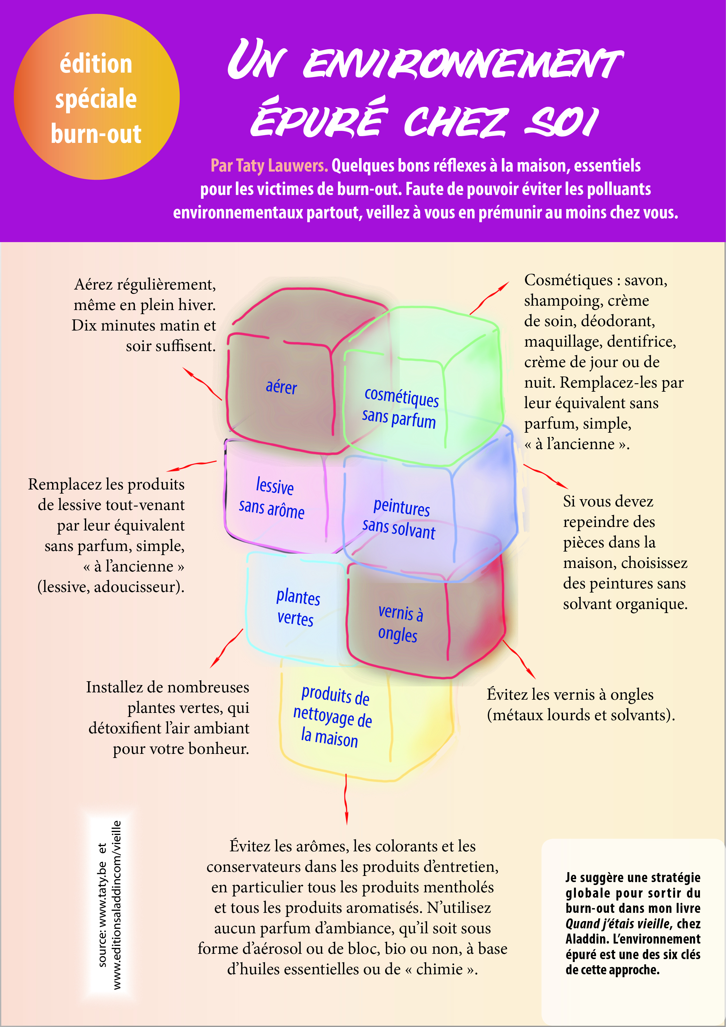 Quelques bons réflexes à la maison, essentiels pour les victimes de burn-out et les canaris de la modernité. Faute de pouvoir éviter les polluants environnementaux partout, veillez à vous prémunir au moins chez vous des contaminants ci-dessus.