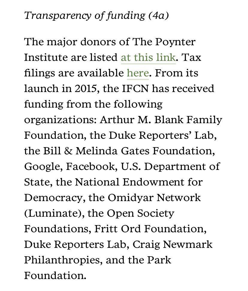Mais du coup, qui finance ce réseau de journalistes “indépendants” rattaché à l’institut Poynter ? Quelle surprise ! On y retrouve bien sûr l’Open Society, mais aussi la Gates Foundation, Google, Facebook, la NED et même… la “US Department of State”. https://www.poynter.org/international-fact-checking-network-transparency-statement/