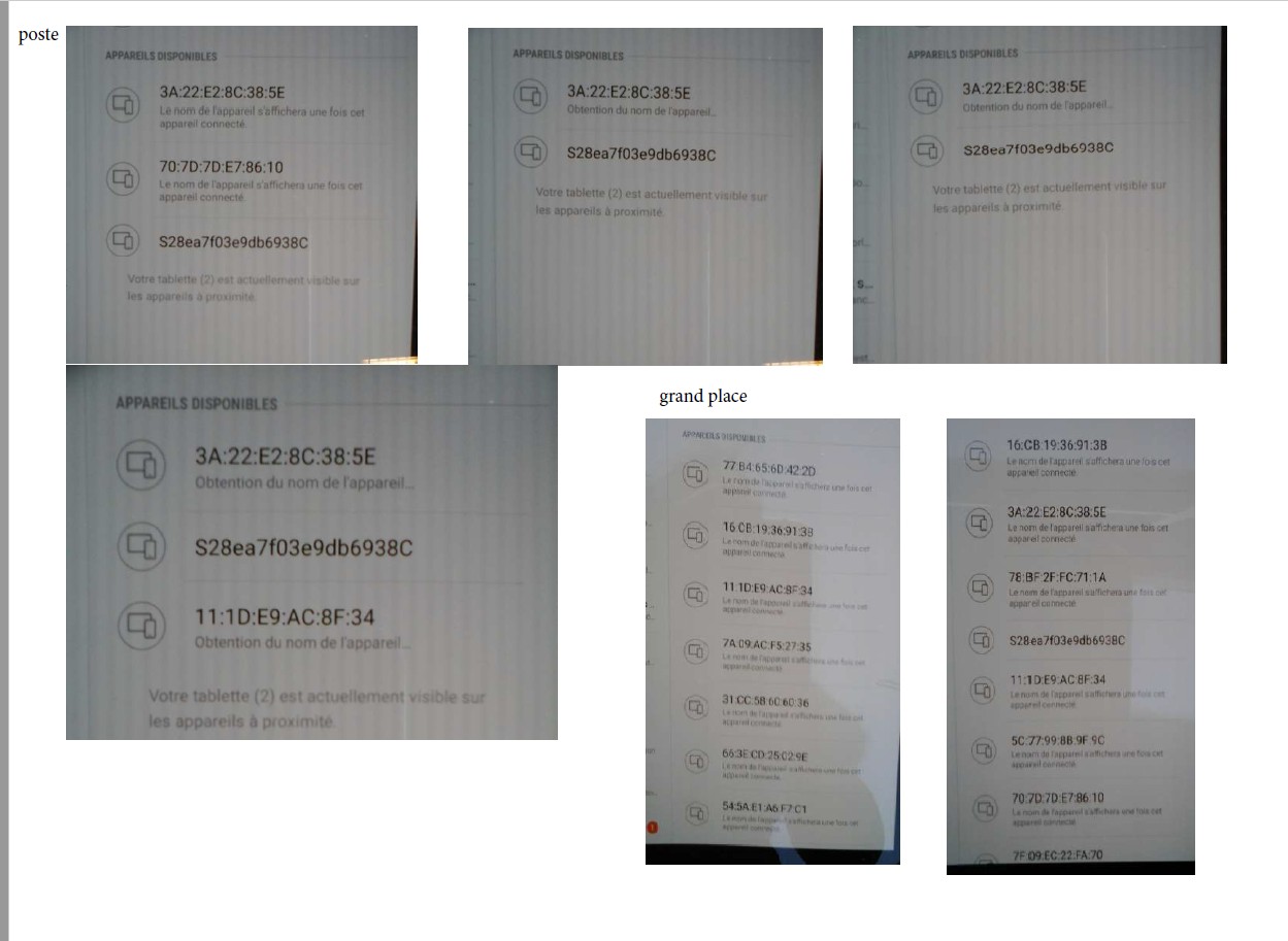 Je fais ici une demande d'aide à des plus technos que moi: quels connecteurs bluetooth en rue? en magasin? qui ne seraient pas identifiables par nom, mais bien par MAC address du type de celles qu’on voit sur mes captures d’écran
