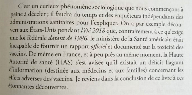 27.7.2021 Petite bouteille à la mer pour les multiples clones de Stiegler et Ruffin (Barbara Stiegler membre de l'Eglise de Vaccinologie?), qui sont oh! de si bonne volonté et qui se prétendent informés et adeptes de la raison: voudriez-vous ne lire qu'un, un seul, livre sur les vaccins? Par un chercheur rigoureux, qui étudie l'oeil ouvert la "fabrique des vaccins", sans se focaliser sur l'un ou l'autre ingrédient qui serait toxique, mais le manque criant de pharmacovigilance dans le domaine. Allez, bonne volonté: deux, svp.