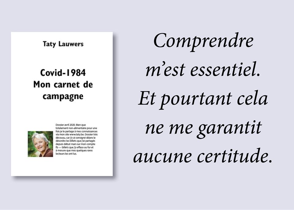 En filant la laine, il me vient ceci, que je peux mettre en exergue de mon dossier entier et que je peux opposer aux accusations de complotisme ou de catégoricisme. «Comprendre m’est essentiel. Et pourtant cela ne me garantit aucune certitude.» Enoncé que je mets aussi en regard des questionnements de ma stratégie du «petit chiot» que mon ami Frank suggérait. Vite un petit poster (NB septembre: le dossier a changé de nom)