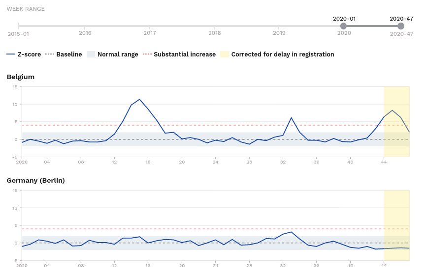 Toujours édifiant de regarder au-delà des frontières - ici à l'aide du décodage par Christophe de Brouwer. Je pense à son graphique nr 4: «Celui d’euromomo qui compare les pays européens entre eux, en termes de mortalité générale. Il est important de se comparer, car la Belgique est le plus mauvais élève de la classe en chiffre brut rapporté à sa population. Je vous donne la comparaison avec notre voisin, l’Allemagne. Cela montre, et il faut le dire sans hésitation, la façon honteuse dont la crise sanitaire est gérée en Belgique.»