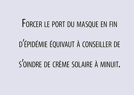 Bref, forcer les masques, c’est gagnant à tous les coups. Sauf pour nous