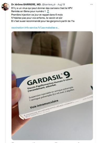 NB image: le Gardasil, mis sur le marché en 2006, est un vaccin anti-papillomavirus humain, qui est censé réduire le risque de cancer du col de l’utérus. Il a produit d'innombrables séquelles. Je vois qu'en RS les médecins peuvent faire de la pub, maintenant?