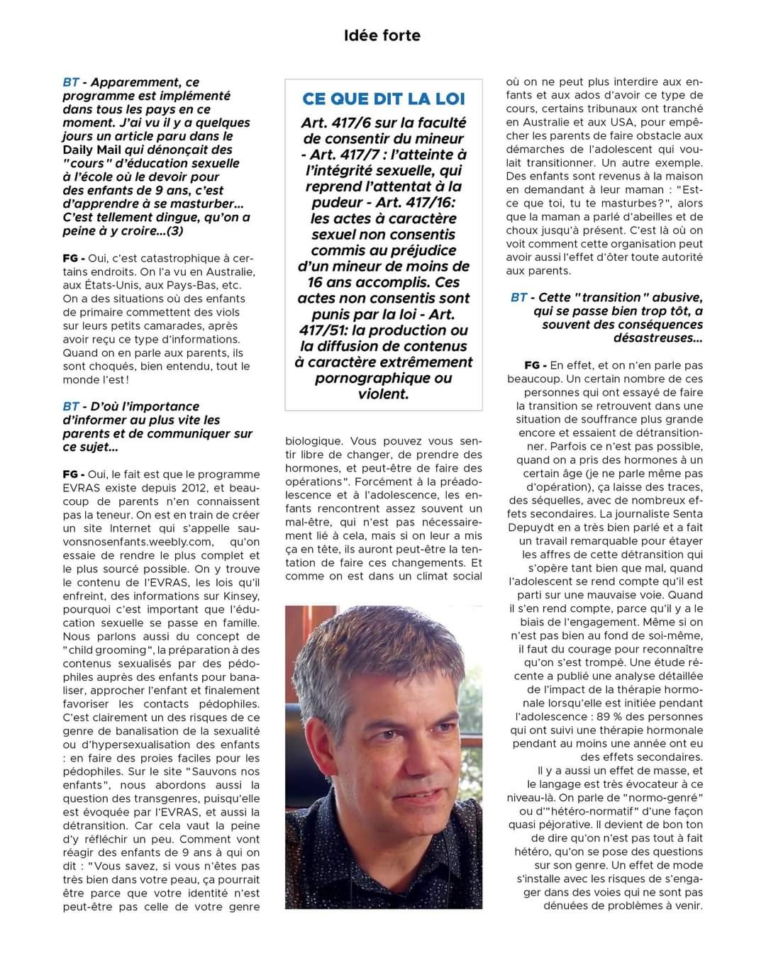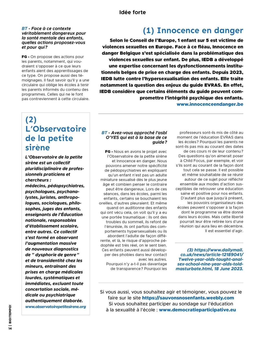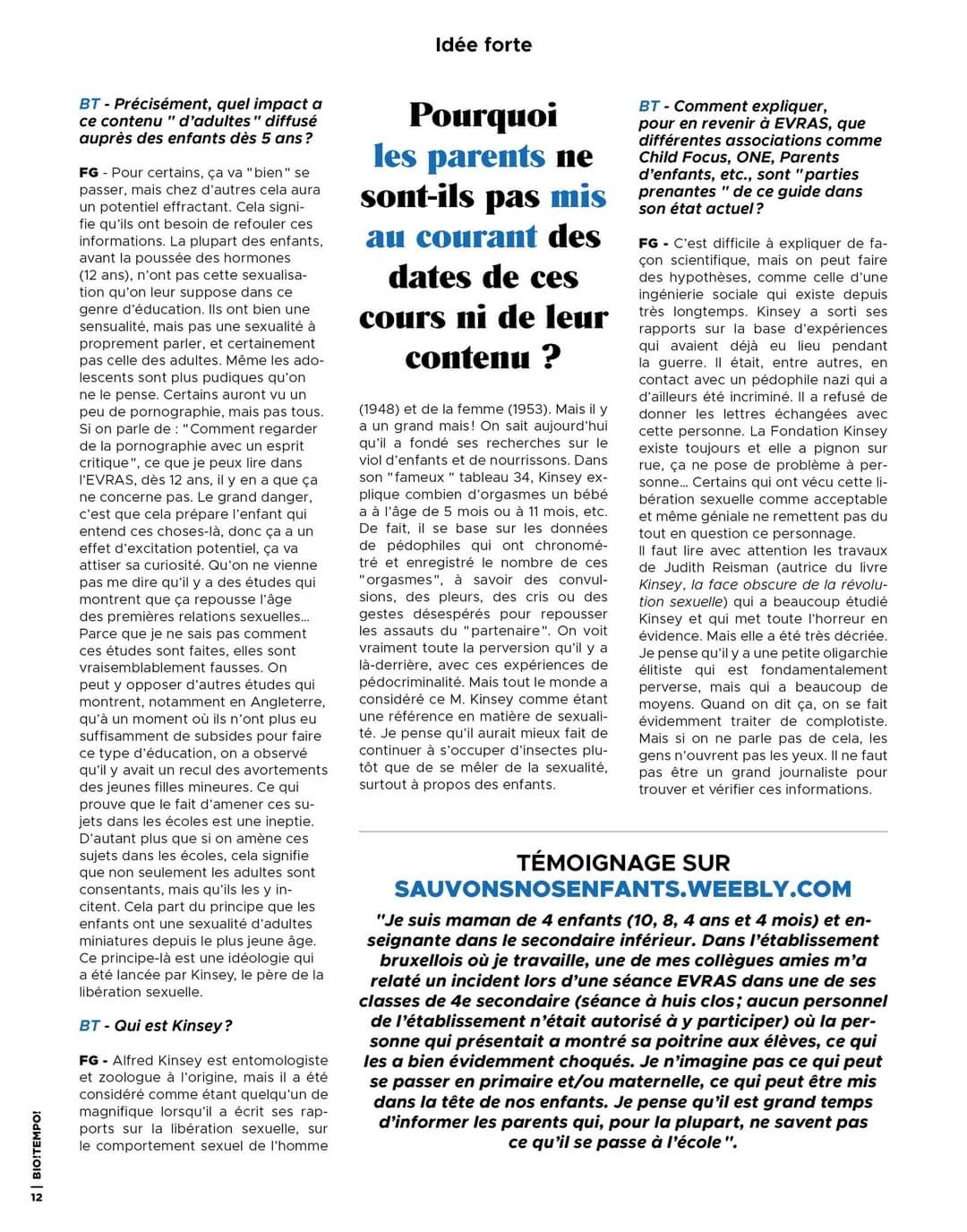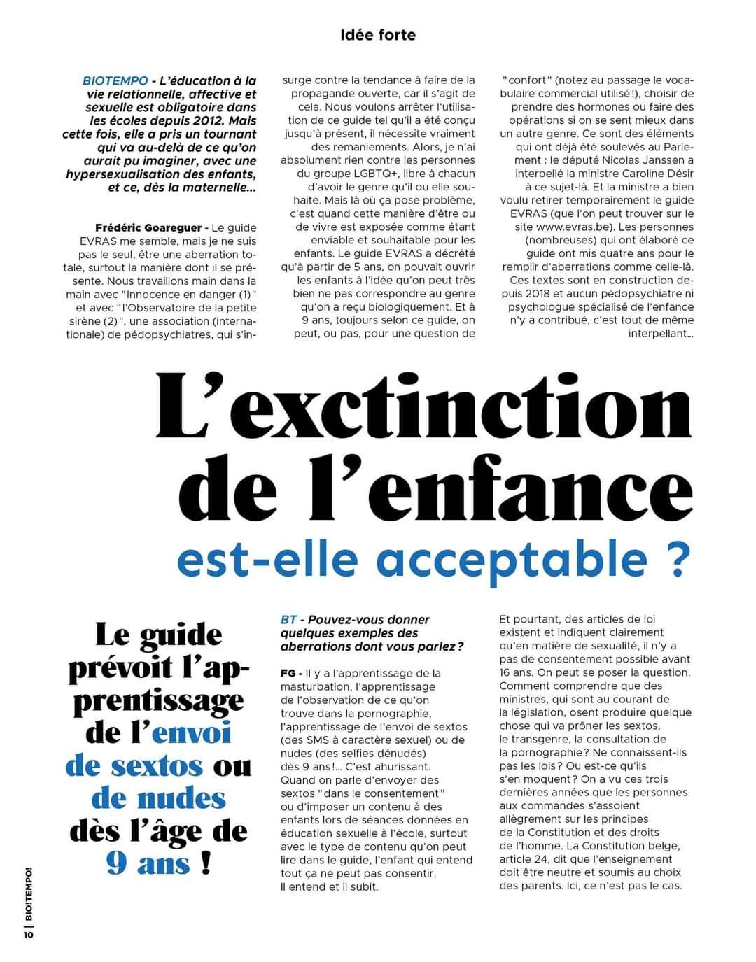 3/8/2023 Le magazine Biotempo interroge un pédopsychiatre, fondateur de Sauvonsnosenfants, sur le guide Evras.