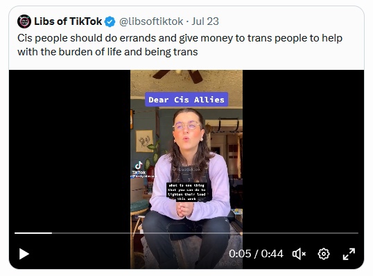 Pathétique ou tragique? que ces jeunes tentés par le joueur de flute transgenre: dans cette vidéo, les "alliés cis" devraient bosser et nourrir les trans qui souffrent tant. Tombera-t-on plus bas?