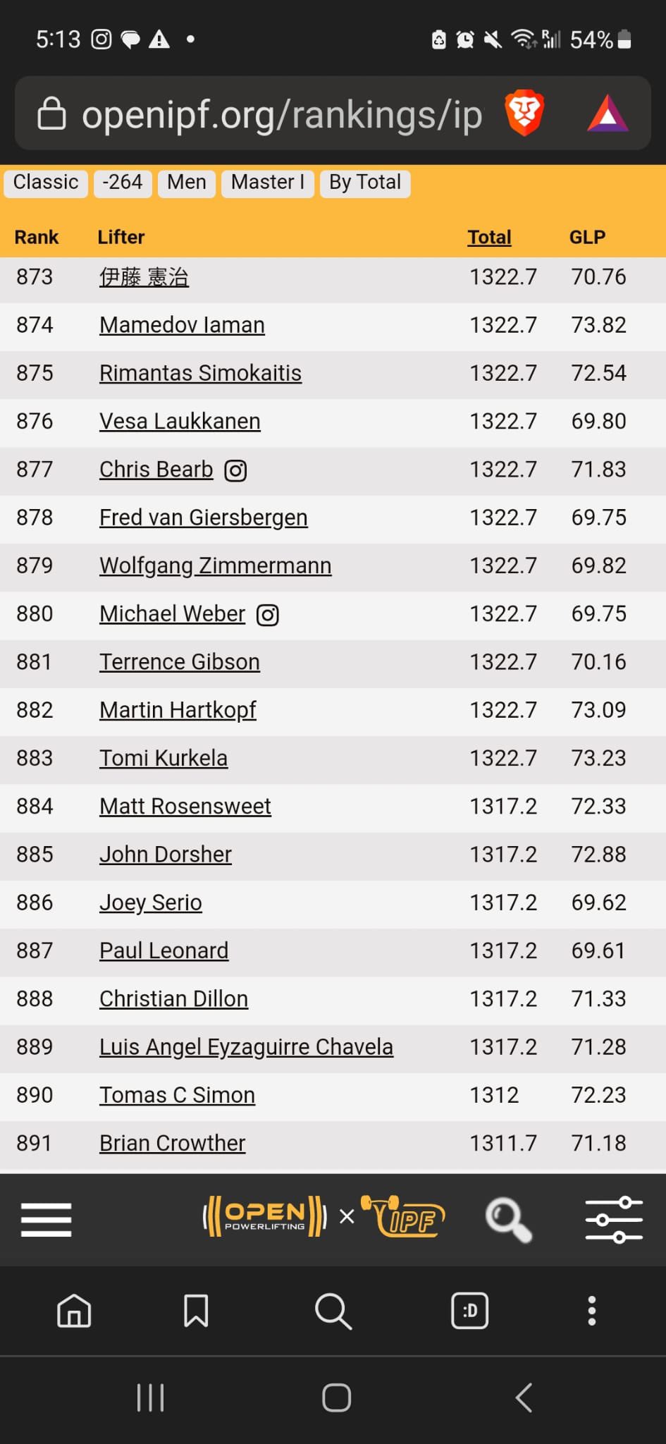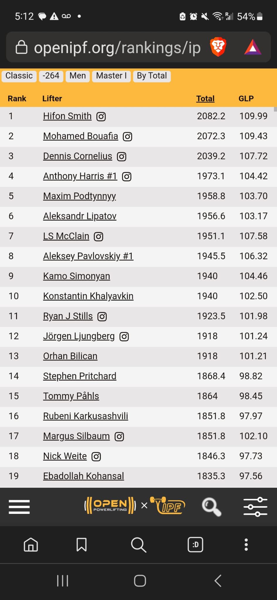 "Dans les tableaux ci-joints, on voit pour le champion masculin : 2082,2 lb au total; tandis que le 891ème dans cette catégorie: 1311,7 lb au total. Andres soulevant un total de 1327 lb, on ne s'étonne pas qu'il veuille rivaliser avec les femmes.