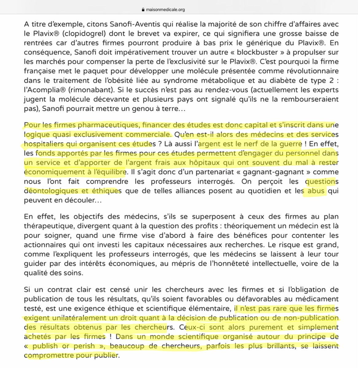 Il n’est pas rare de constater que, parmi les scientifiques qui publient, certains soient même directement employés par les firmes pharmaceutiques et/ou reçoivent des actions de l’entreprise.