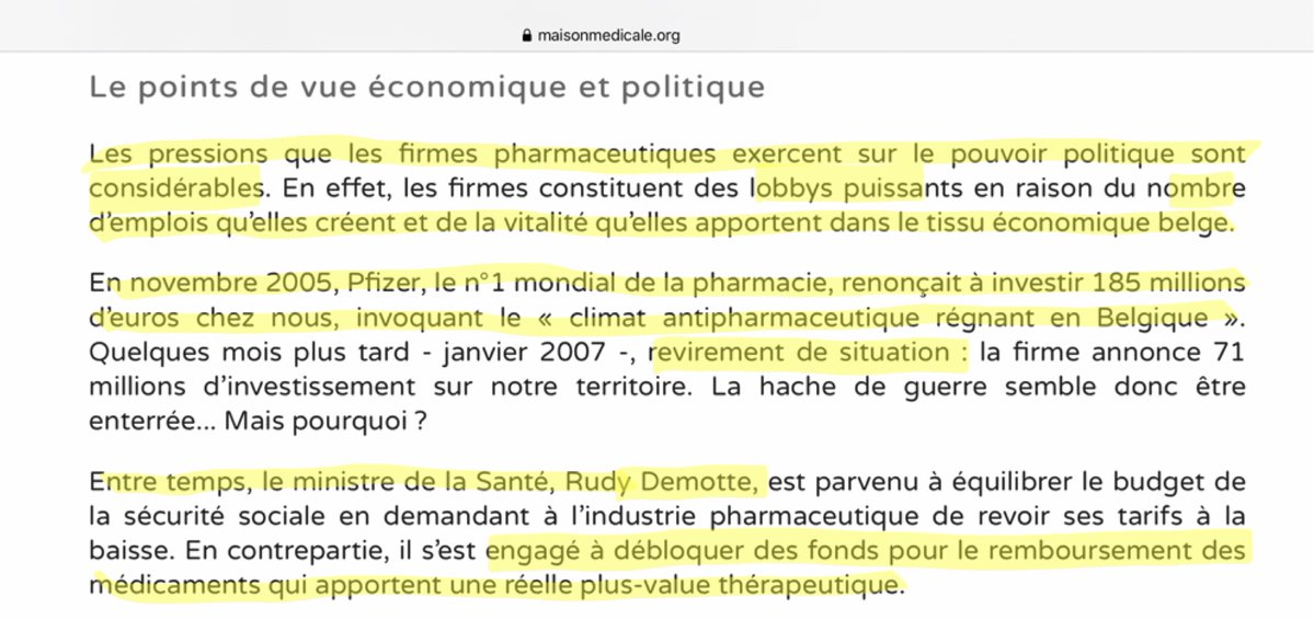 Ce qui pourrait être ajouté à cette enquête de la fédération des maisons médicales datant de 2008, c’est que, depuis 2020, des employés de firmes pharmaceutiques créent des ASBL exprimant la « mission » de chasser les pseudo-fakenews sur les R.S., et qui, tout en se prétendant sans conflits d’intérêts, essaient d’intimider les scientifiques qui expriment un avis différent. On ne sait pas si c’est cautionné (voire demandé) par les firmes pharmaceutiques qui les emploient...Mais quand on sait que les cadres des firmes pharmaceutiques reçoivent souvent comme avantages des actions de leurs entreprise, il est légitime de penser que l’intérêt financier personnel existe.