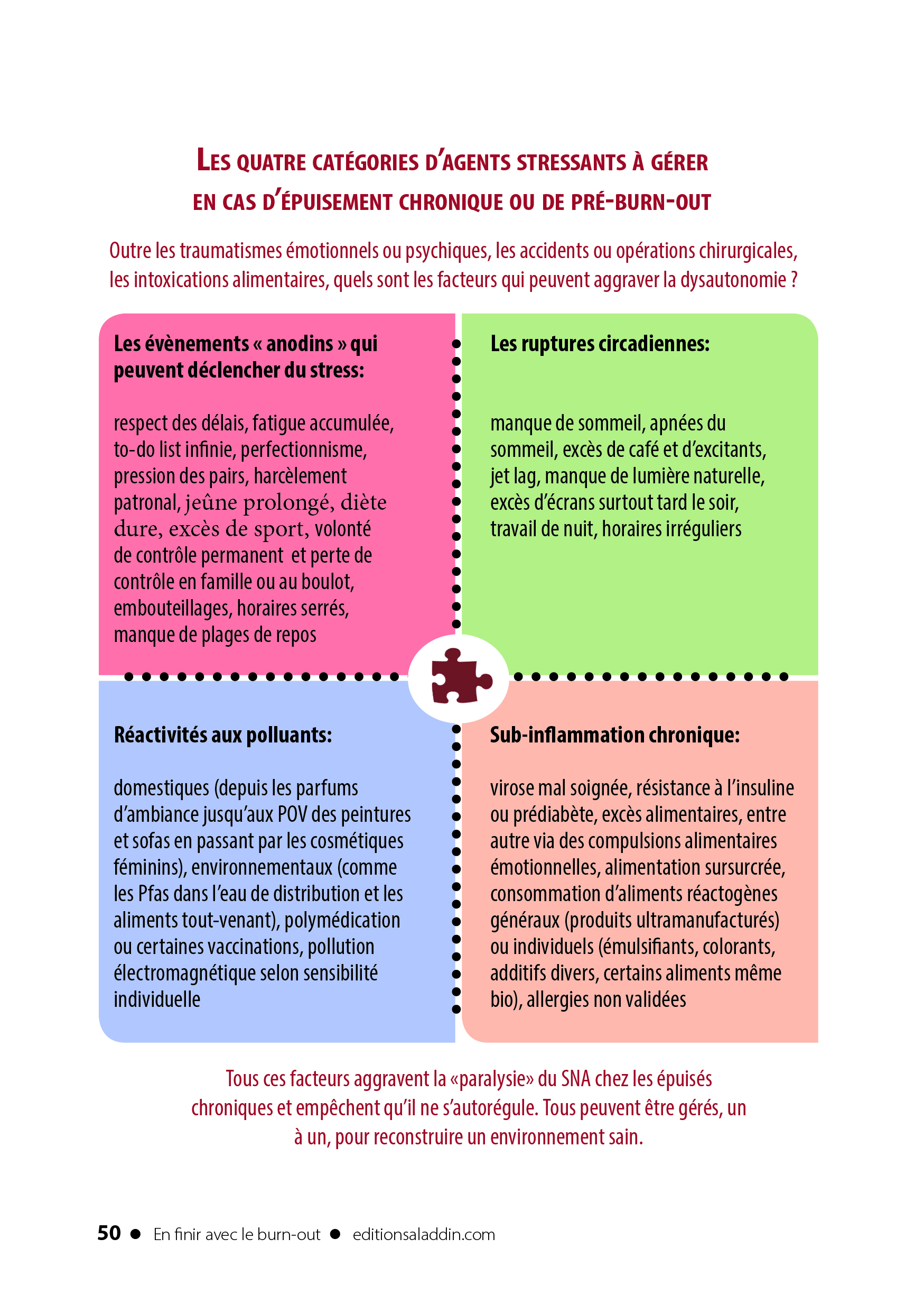 Selon le dr Poesnecker, que je relaye dans le topo expert, les agressions sociales et psychiques ne sont pas les seuls microchocs auxquels le système nerveux autonome (SNA) doit faire face et qui, parfois, épuisent l’organisme, le rendant inopérationnel. Voyons quelques facteurs trop souvent oubliés par les théoriciens du SNA et très négligés par les études en nutrition. Faute de les envisager, le praticien se cantonnera à soigner la dépression, alors que celle-ci n’est que le résultat de la décapilotade physiologique.