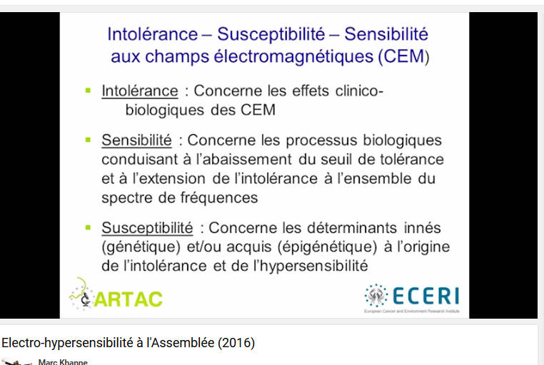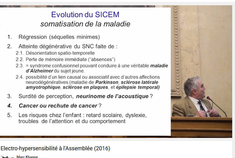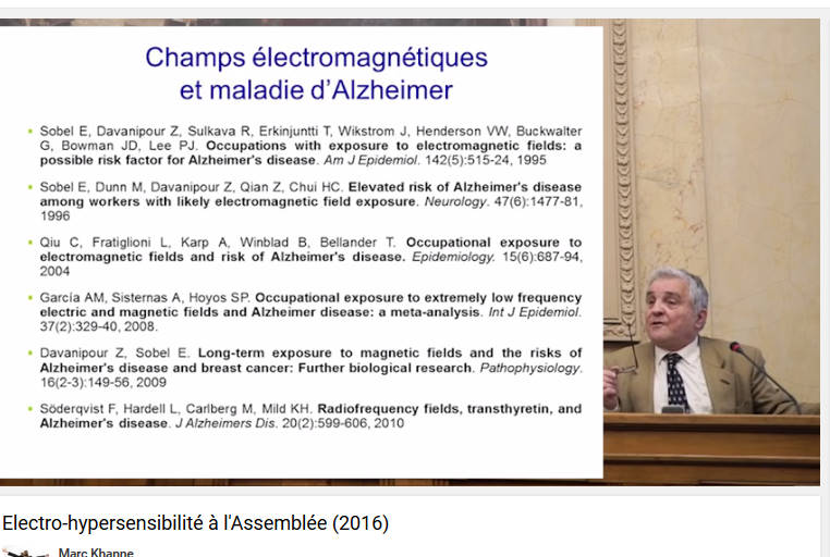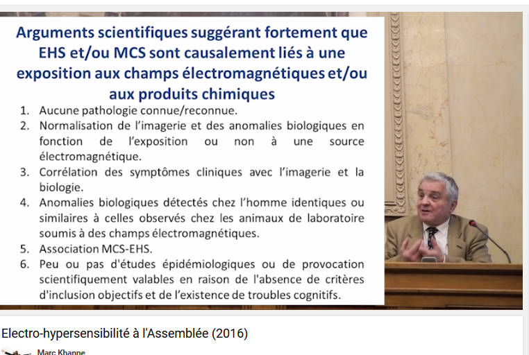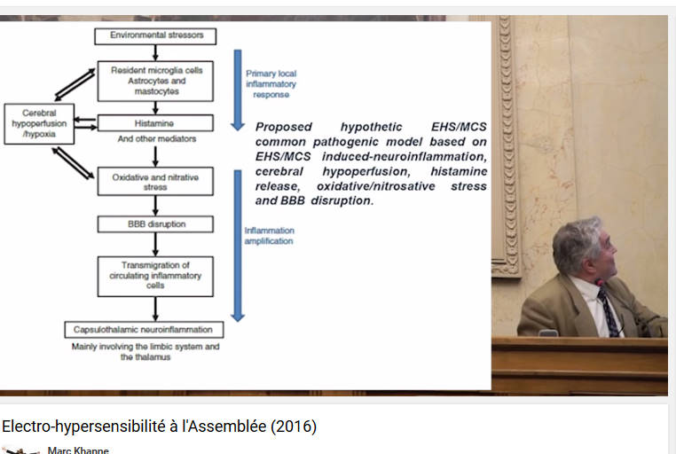 Il n'est pas étonnant que l'électrosensibilité suive ou précède la chimicosensibilité (SCM), comme le remarque le professeur dans sa pratique depuis quelques années, s'il est vrai que les deux phénomènes scient à bas bruit les branches de notre arbre de vie. Seuls les surdoués de l'orthosympathique s'en sortent, les parasympatico-dépendants paient les pots cassés de la modernité... L'infographie sur l'ortho et le parasympathique arrive bientôt (ces termes n'interviennent pas dans l'exposé du formidable docteur).