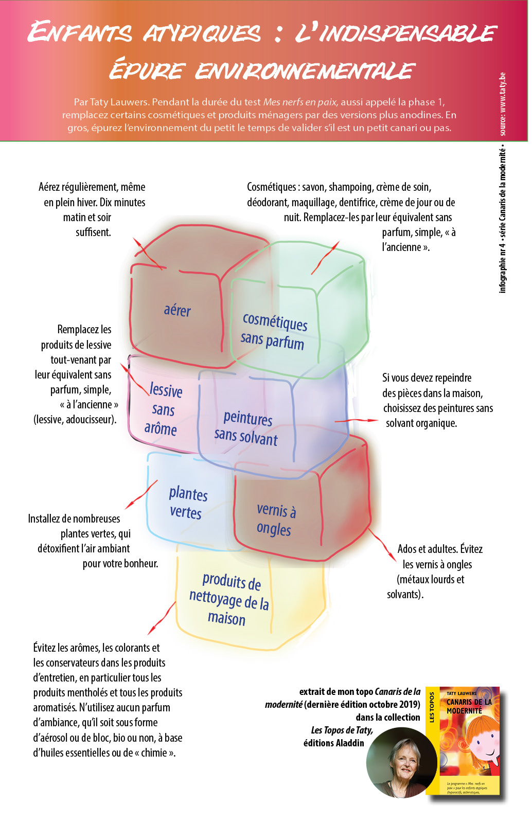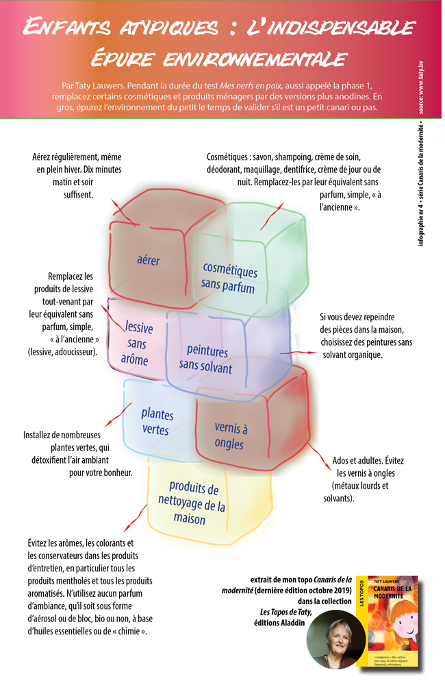 Par Taty Lauwers. Pendant la durée du test Mes nerfs en paix, aussi appelé la phase 1, remplacez certains cosmétiques et produits ménagers par des versions plus anodines. En gros, épurez l’environnement du petit le temps de valider s’il est un petit canari ou pas.