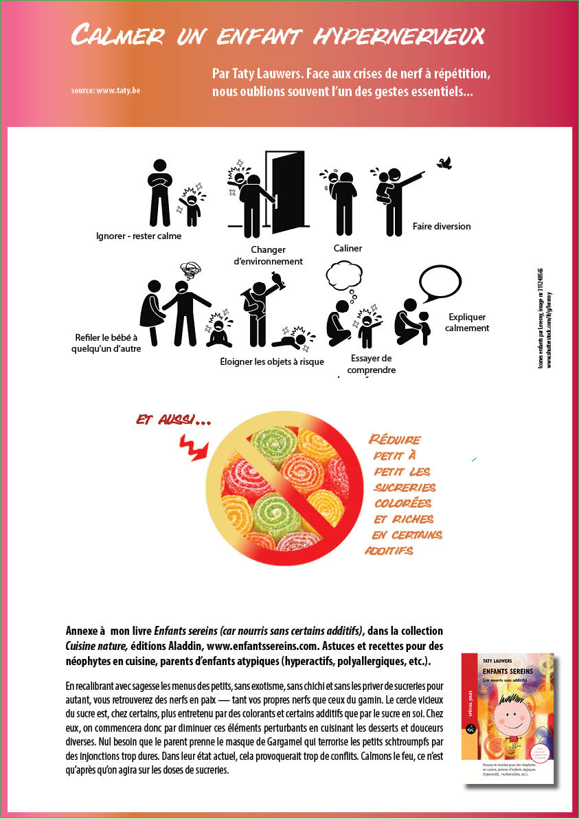 Annexe à mon livre Enfants sereins (car nourris sans certains additifs), dans la collection Cuisine nature, éditions Aladdin, www.enfantssereins.com. Astuces et recettes pour des néophytes en cuisine, parents d’enfants atypiques (hyperactifs, polyallergiques,etc.).