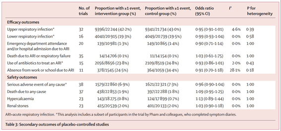 Dixit: "La prise de vitamine D vous rend-elle moins susceptible de tomber malade ? Il s'agit de l'ensemble de données le plus vaste et le plus à jour : 46 essais randomisés portant sur 65 000 personnes au total, visant à déterminer si la supplémentation en vitamine D (par rapport au placebo) prévient les infections respiratoires. La réponse ? Aucun effet."