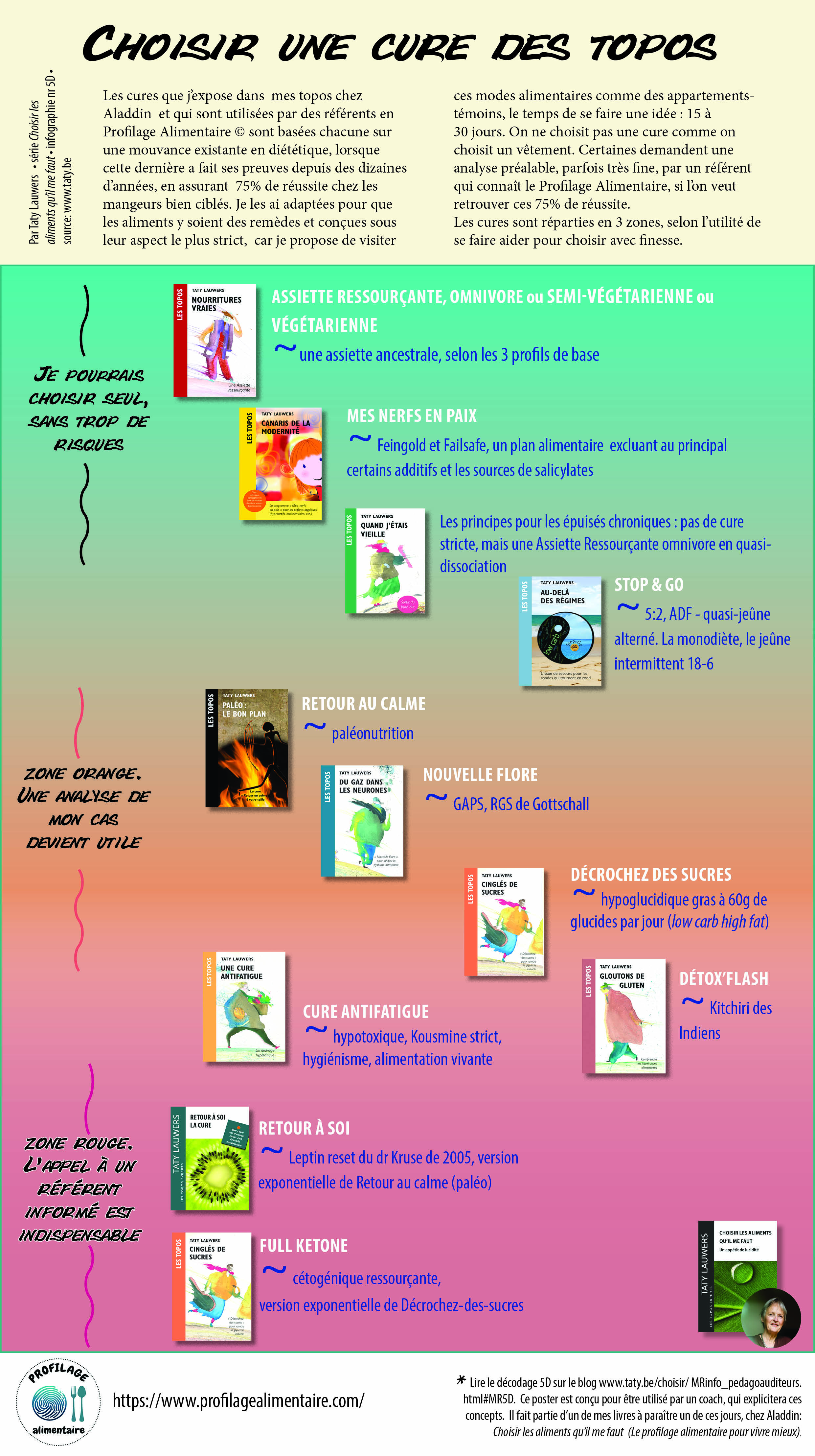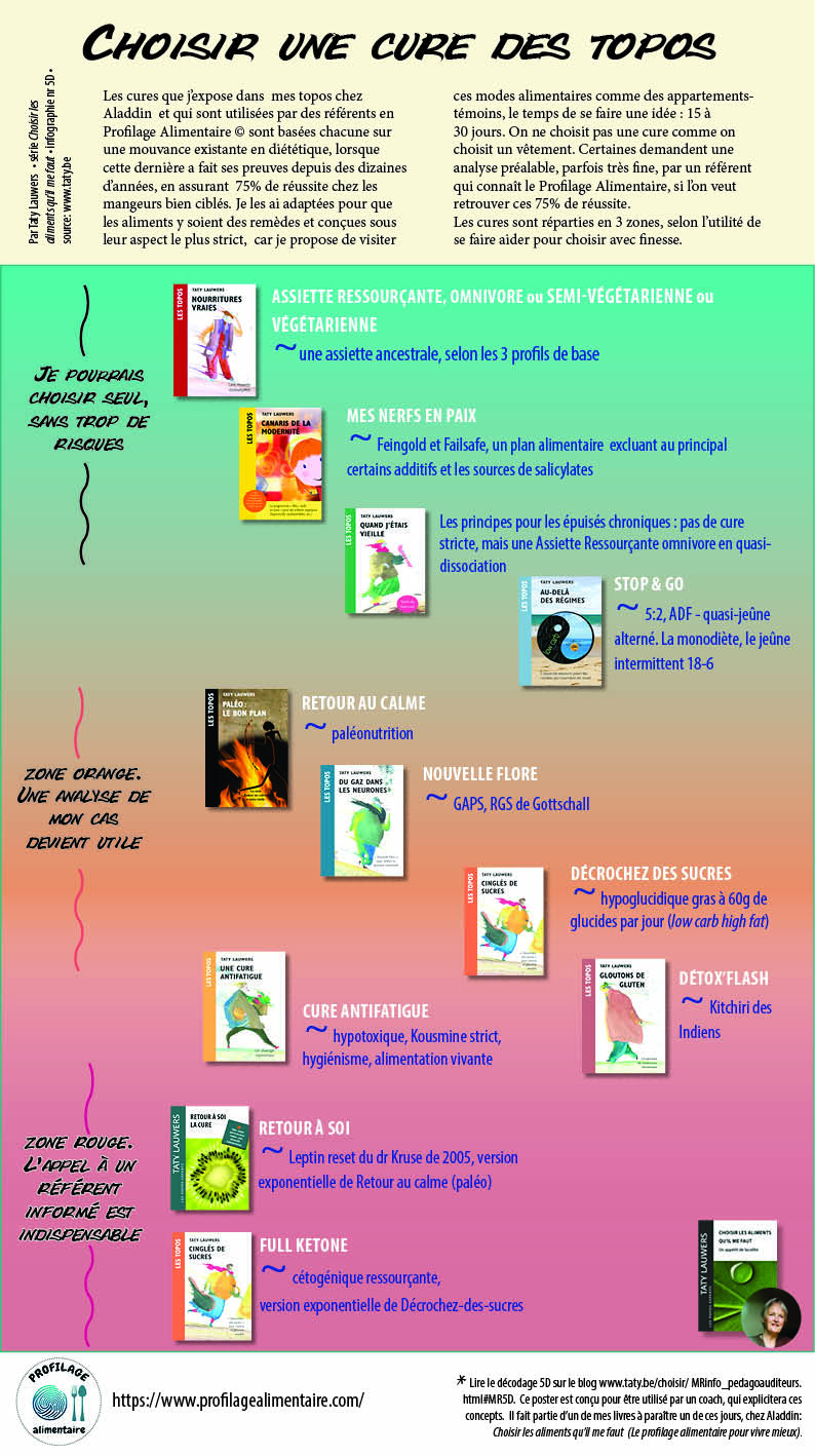 21.7 Dans la série des nouvelles infographies de l'été 2019 autour du thème "Choisir l'assiette selon le profil". Pour comprendre la place des "cures" de mes topos au sein de l'alternutrition et savoir comment choisir. Malvoyants, lire la transcription en texte de ce poster.