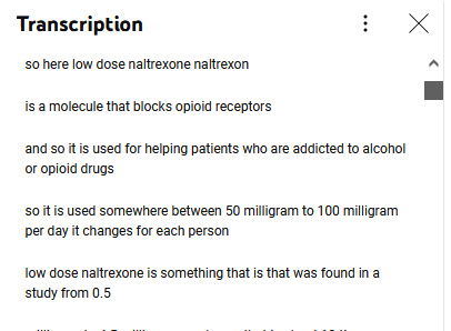 5.6.23 Suite de mon carnet et détails sur la naltrexone bas dosage (LDN ou low dose naltrexone) que j'utilise depuis dix jours: infos, vidéos, forums, dosages, ma pratique. NB sur la transcription de vidéos.
