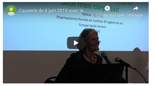 #4A.Interlude vidéo: Pour aider chacun à faire des choix avisés, avec la pharmacienne nutritionniste Hélène Altherr. Le sujet: "Végan? Végétarien? Omnivore? L'alimentation vue sous les angles de la nutrition, de l'éthique et de l'écologie. Pour aider chacun à faire des choix avisés. Et écouter la réponse que lui envoie son corps."