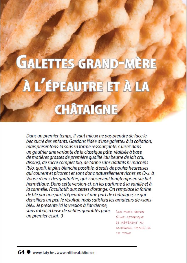 Tome épuisé pour l'instant. Les recettes révisées fondamentalement seront bientôt publiées en plusieurs livrets: les bases, les trucs et astuces de réussite en pâtisserie, les crèmes et les fruits, les biscuits, les gâteaux, les crèmes glacées et sorbets. Peut-être en format papier, peut-être en version digitale, sous forme de dossiers à télécharger gratuitement via notre portail greenshop. Un des chapitres s'adressera aux parents d'enfants "canaris", et complètera le dossier "Enfants sereins".