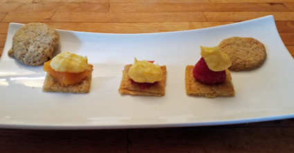 Je voudrais présenter des jolis blocs de coulis gélifié, afin que chaque convive puisse y découper sa part et se composer sa propre tartelette, comme indiqué dans le projet "Carnaval citronné". On pourrait proposer de la confiture, mais vu qu’on peut dômer sa microtarte avec du lemon curd, les compositions individuelles risquent de dégouliner. Donc : gélifiant dans le coulis de fruits…