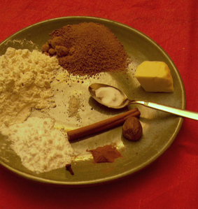 Pour une quinzaine de Speculoos : 70 g de beurre - 250 g de farine d’épeautre - 65 g de sucre complet bio (3 cuill. s. bien bombées) - 60 g de sucanat/demerara (3 cuill. s. bombées) - ¼ cuill. c. de sel marin - 10cl à 30 cl d’eau - 1 cuill. c. de mélange quatre-épices ou, à défaut, 1 cuill. c. de cannelle et 1 pincée de noix de muscade râpée - 1 cuill. c. de bicarbonate de soude - jus d'un demi citron