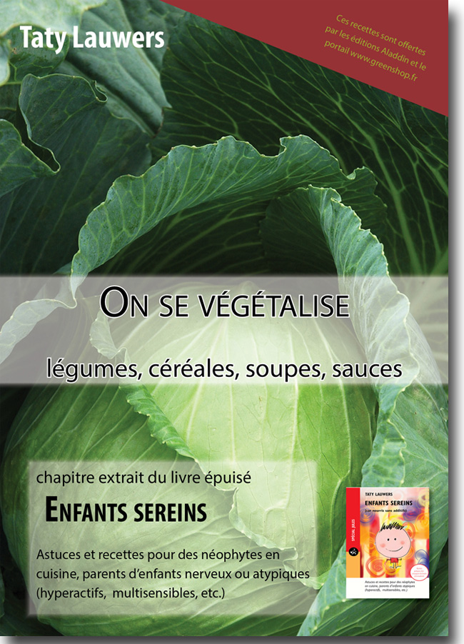 En association avec Aladdin, ma maison d'édition, j'ai le plaisir de vous offrir un dossier digital, à télécharger (59 pages au format A5): un chapitre entier de recettes, de commentaires, de trucs et astuces autour des légumes, des céréales, des potages. Extrait de ce livre épuisé, qui était le tome compagnon pratique du topo :