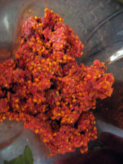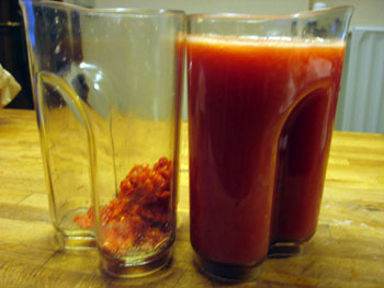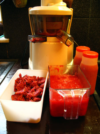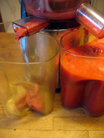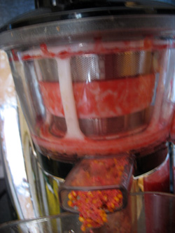J'ai pressé du jus de tomates Roma, avec le filtre orange à grille moyenne.