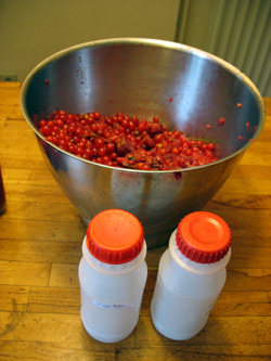Je congelerai ce coulis en petites bouteilles de récup' pour réaliser mes sauces tomates en hiver. Petite erreur sur la photo : la proportion de pulpe n'est pas équivalente au jus sur la droite, mais aux nombreux kilos pressés.