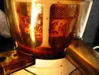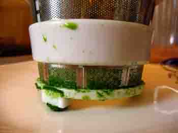 Mes Huiles d'Aromates sont du jus de persil, basilic, coriandre, etc. dilué d'un peu d'huile pour une conservation plus longue que la journée (jusqu'à trois semaines au frigo). Comme avec le Jazz Max, l'extraction de jus d'herbe est facile et sans souci. J'ai produit ici plus de jus de persil qu'avec le Max, soit près d'une fois et demi de plus.