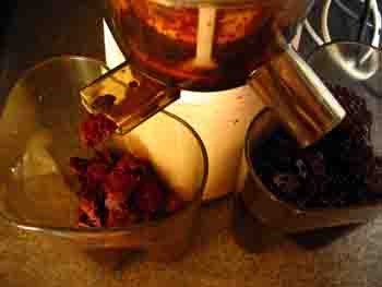 Cela prend un temps record (voir le billet sur les minutages, dans quelques jours). Toute la pulpe est éjectée, à l'inverse du Max qui en garde toujours un peu, surtout quand le végétal est humide (raisins, etc.).