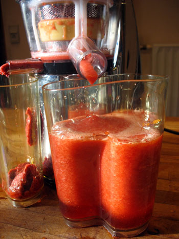 Je poursuis la publication des résultats de mes tests entamés il y a peu, en les cumulant avec d'anciens tests de l'été passé, comparant Jazz Pro, la nouvelle version professionnelle de l'extracteur de jus pour bars à jus, avec le classique Jazz Max, bien connu de la ménagère de moins de cinquante ans…